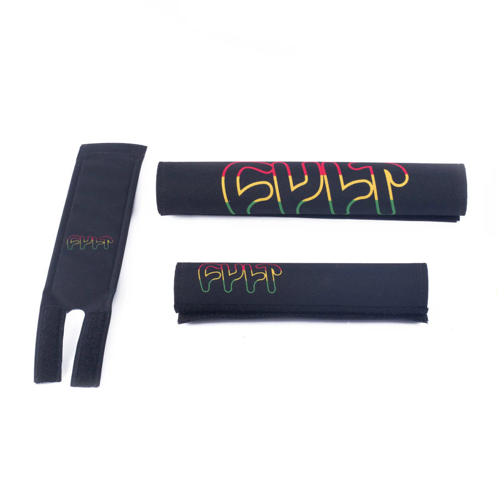 Safeguard your bike and keep it looking stylish with the Cult BMX Rasta Pad Set. Designed specifically for bikes, this set provides superior protection for your bike's frame and components while adding a touch of unique flair with its bold logo design. Made with quality materials, this pad set is a must-have for any dedicated rider.
