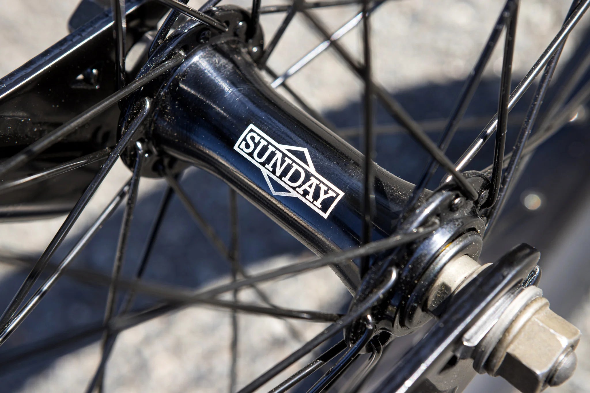 - Front Hub: Sunday, 36H, low-flange, loose-ball, 3/8" axle