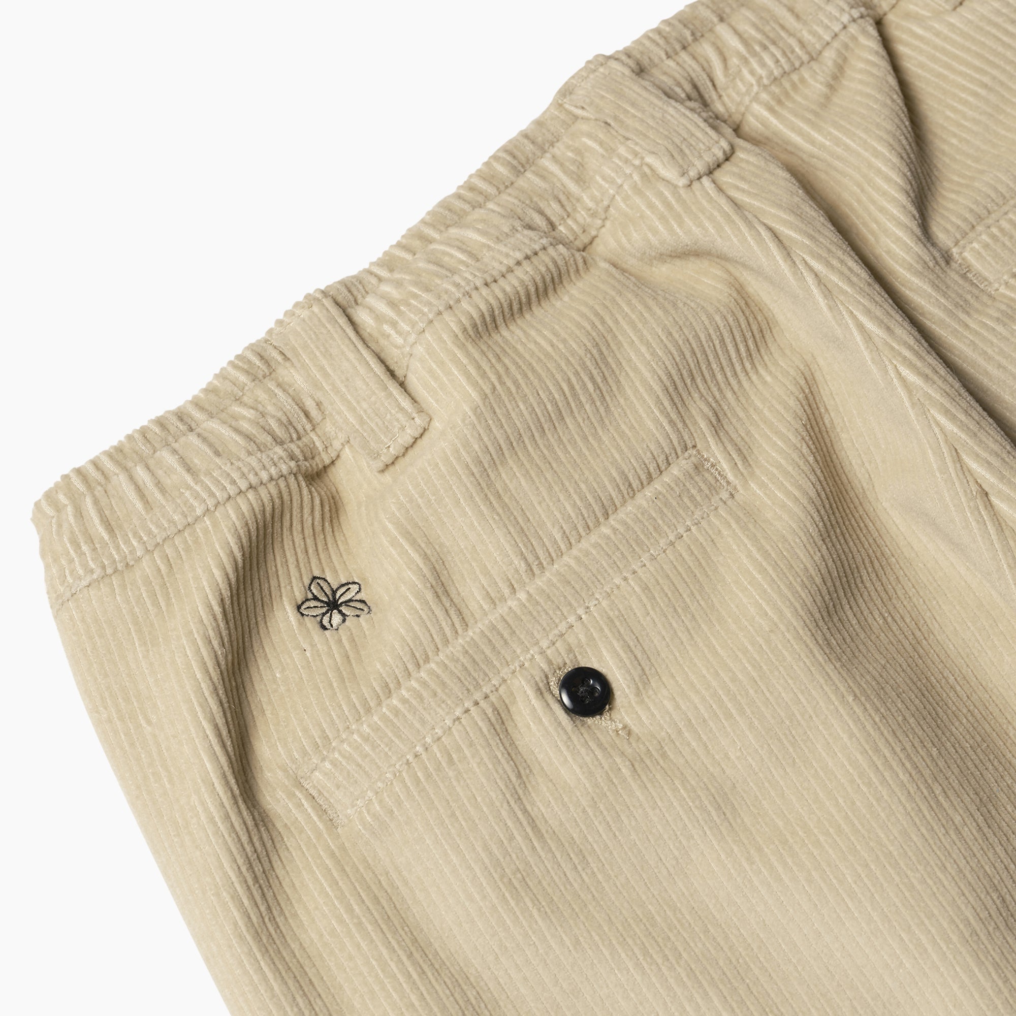 - Floral embroidery on back pocket