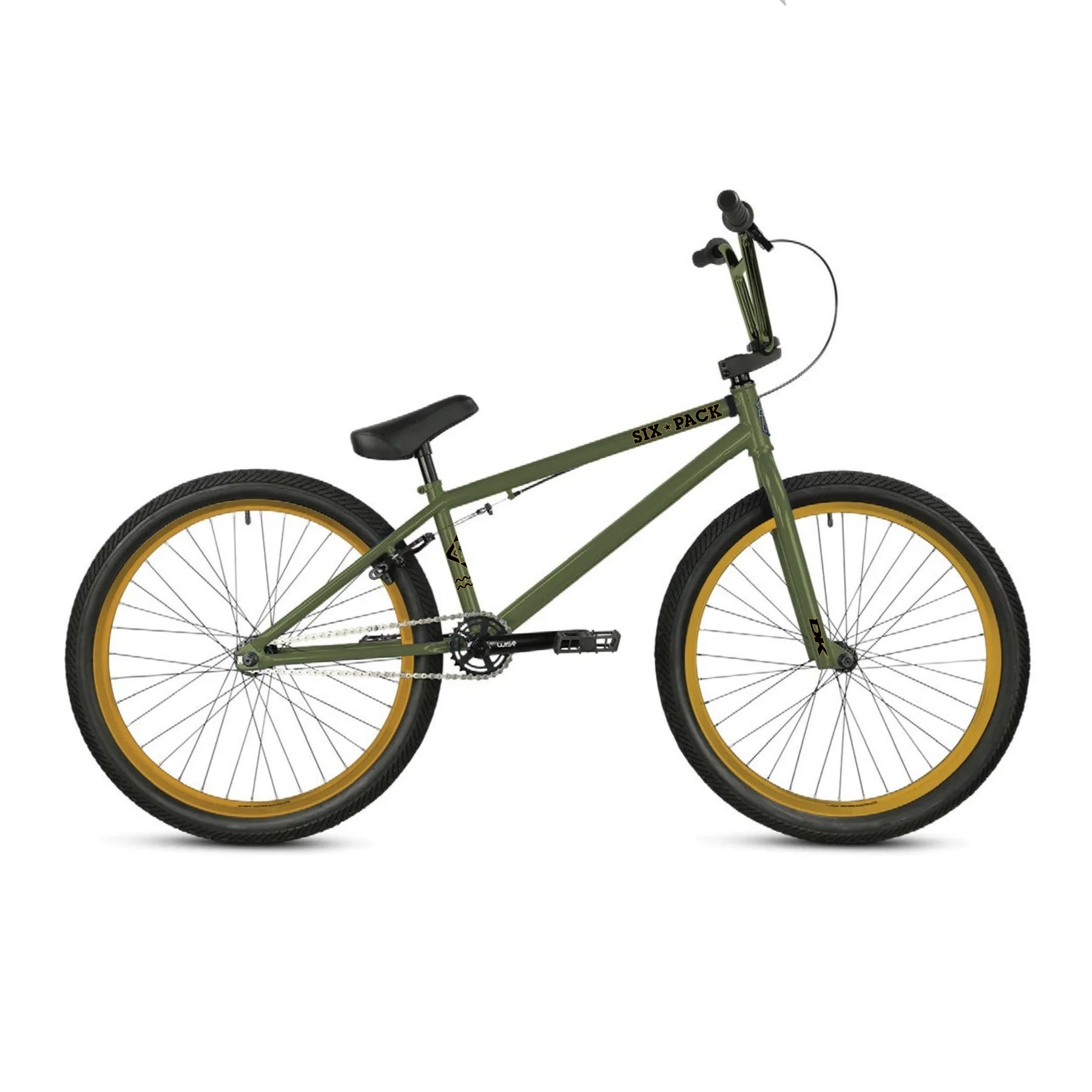 The DK Six Pack 24 brings the quality of the Six Pack into the larger wheeled cruiser ranks. The DK Six Pack got its name at the trails but feels right at home at the park or in the streets. The 4130 heat-treated chromoly main frame is pro-inspired with excellent geometry, upgraded with a strong double-walled wheelset, 100% sealed bearings throughout, and a chromoly crankset with a 26T aluminum sprocket delivering the durability you need for every session. The DK Six Pack is top-tier performance at a price that won't break the bank.