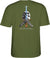 The Rodriguez "Skull & Sword" deck was the first pro signature deck graphic produced by Powell-Peralta. The graphic was conceived by Ray and Illustrated by V.C. Johnson with art direction from George Powell in 1979.