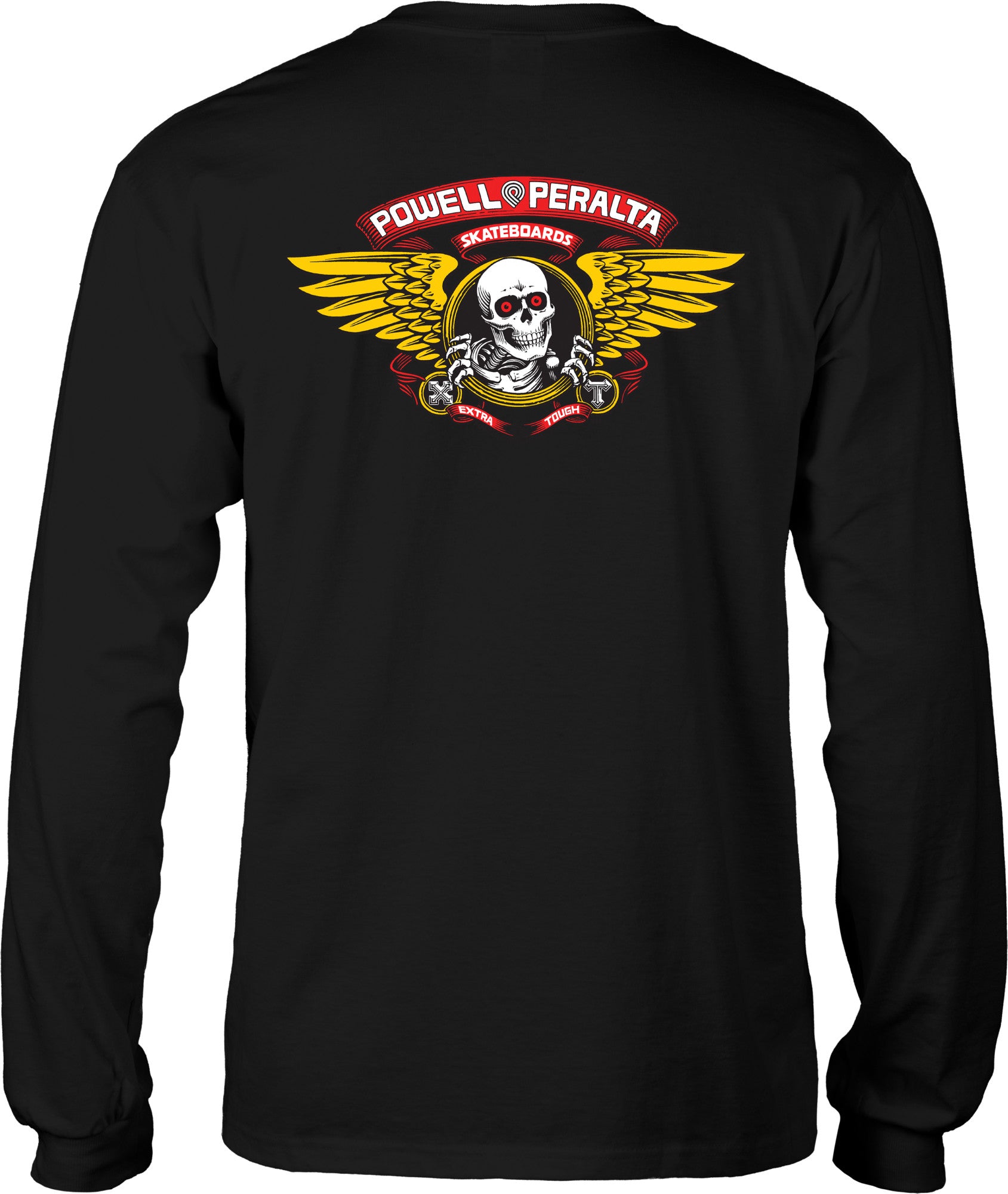 The Winged Ripper graphic was created by artist V.C. Johnson in 1986. Originally it was used as the 1986 Bones Brigade Summer Tour graphic on T-shirts and stickers. Later the graphic was redesigned and used as the top graphic on decks replacing the Oval Dragon. The "XT" refers to Extra Tough Bonite construction, which was later changed to "7-P" When Bonite construction was discontinued.