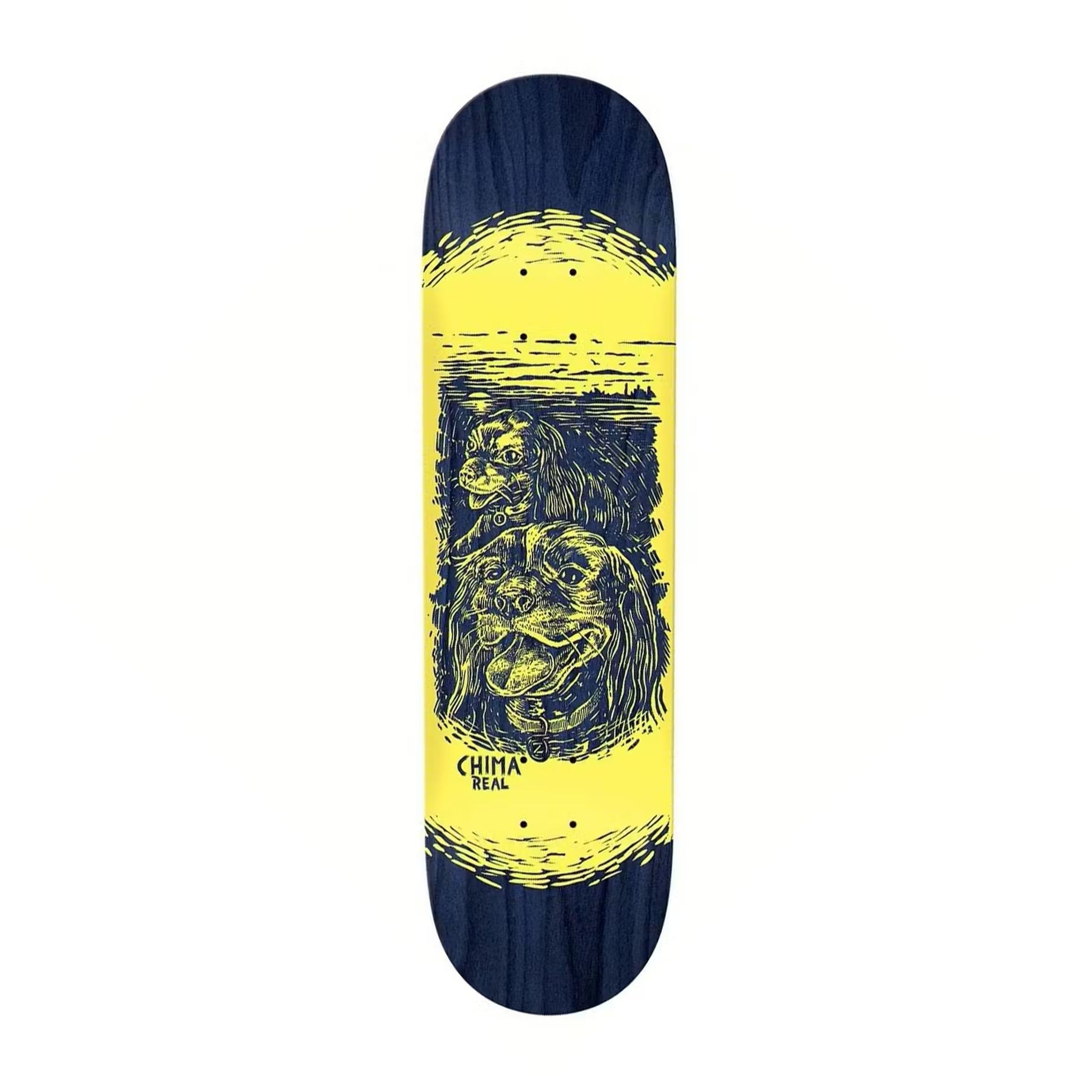 Expertly designed for serious skateboarders, the Real Chima Iggy & Ziggy Skateboard Deck is a top-of-the-line choice. With a width of 8.25", this deck offers optimal stability and control for executing impressive tricks. The bold graphic of Iggy and Ziggy adds a touch of personality to your ride. Background stains color may vary.