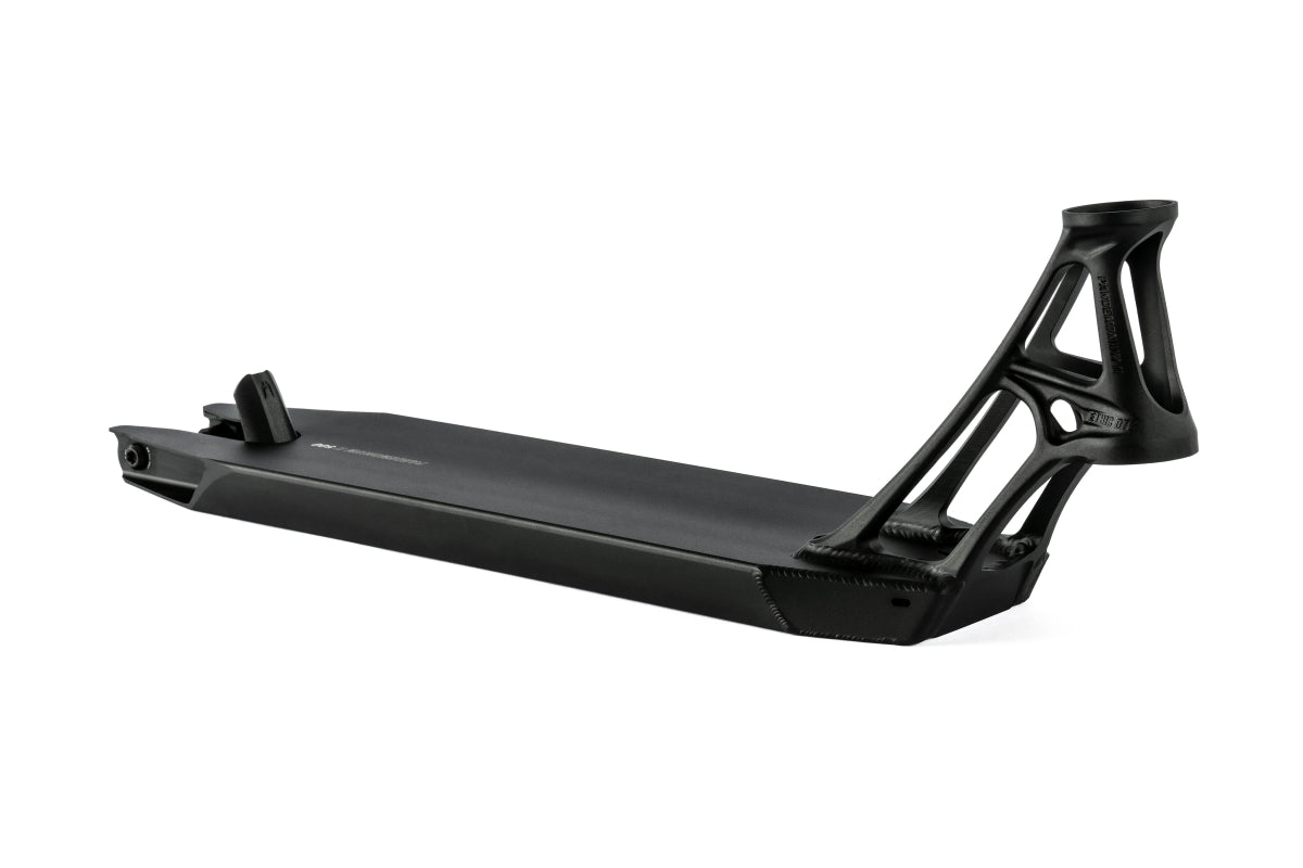 Here is the Pandemonium V2. The lightest deck in the world, and the very first deck to stay under the Kilo. Created and studied from every angle to achieve the ultimate in lightness, it arrives here 9 years after the iconic Pandemonium V1, in a new format. 1 cm wider than the V1 (130 mm / 5.12 in), it is also, and above all, stronger than its predecessor.
