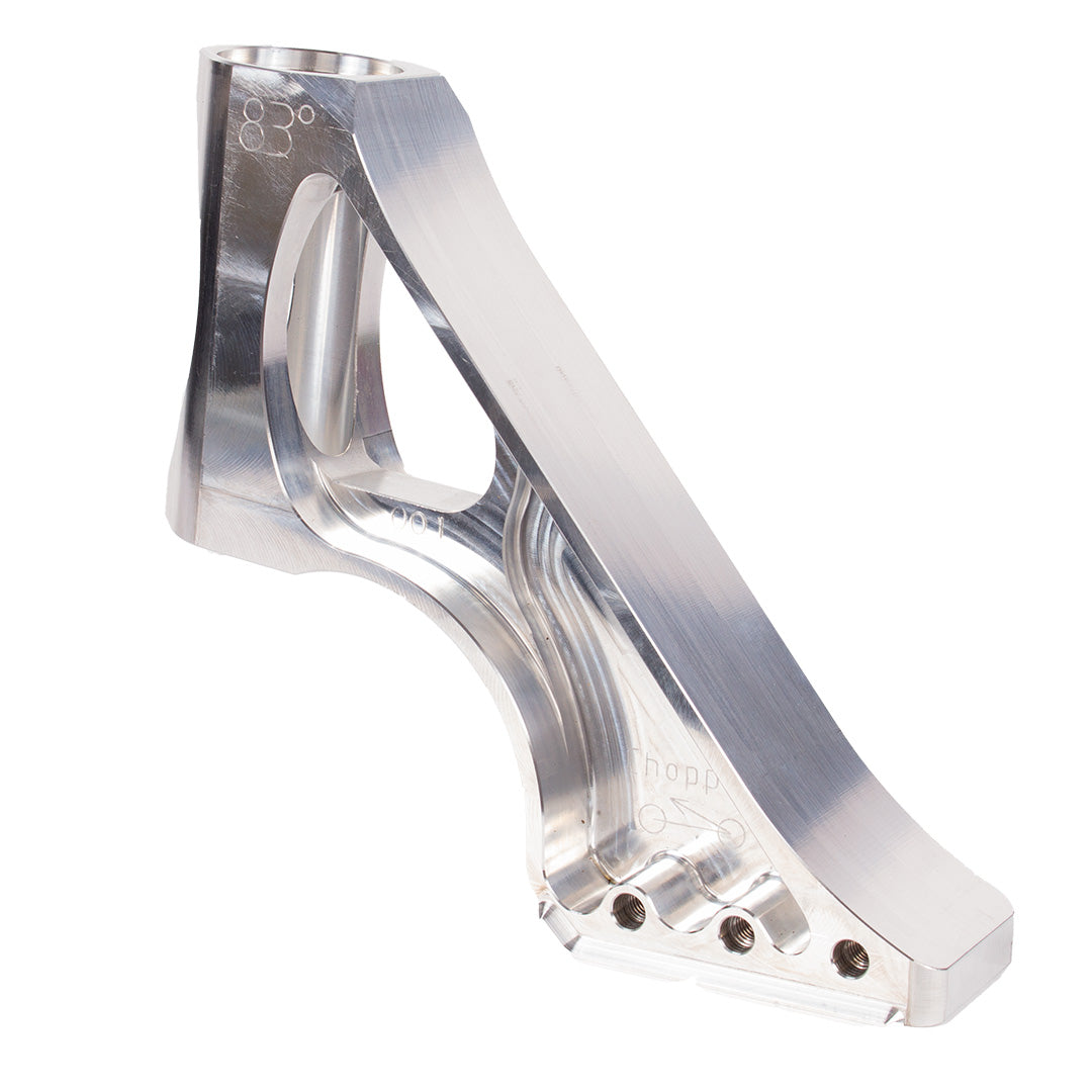 The “Chopper” NEX come in 3 headtube angles 83°, 84° and 85°. The Chopper 83° geometry is a direct substitute for the Orion Standard V2 (2012) and the Orion Integrated V1 (2015). The Chopper 84° is the direct substitute for the Orion TH (2019). The Chopper 85° is the first 85° neck ever produced in scootering and has no substitute.