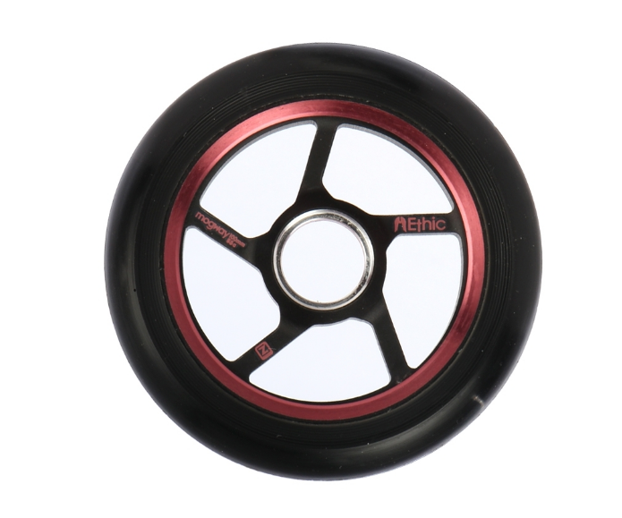 Ethic Mogway Wheels feature a virtually unbreakable core and custom urethane designed for grip and speed. With this unbeatable combination, you pretty much have the toughest scooter wheels in the industry. After months of testing by the Ethic team, Mogway Wheels are one of our top selling scooter wheels. Made from 6061 series aluminum, Mogway Wheels are available in 110mm. 88A urethane is a harder urethane that is more durable than softer urethanes.