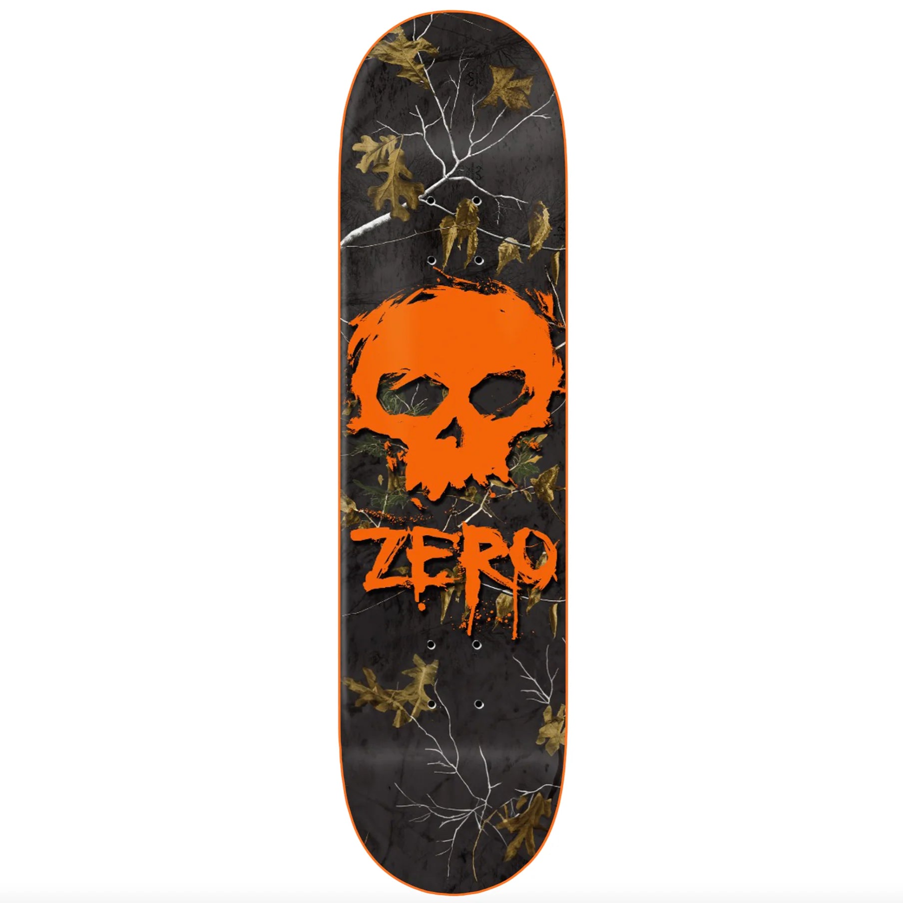 Hit the streets and stack those clips with the Zero Blood Skull Real Tree Deck 8.25 x 31.9. This is a pro quality skateboard deck constructed from traditional 7-ply maple wood with background stains that may vary.