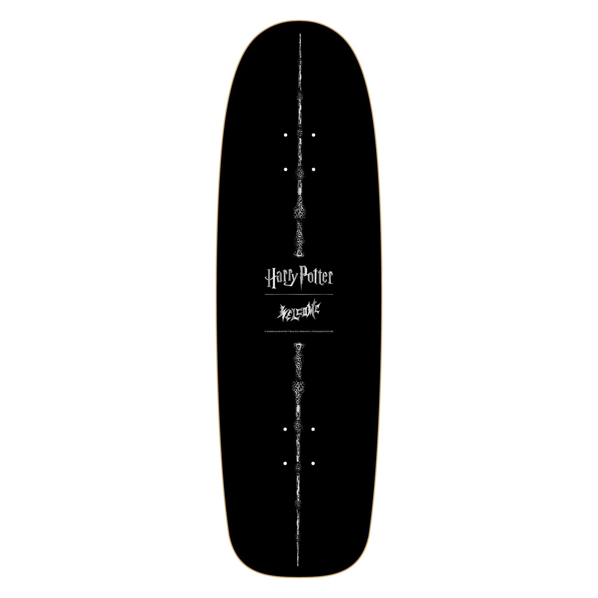 The Welcome x Harry Potter Arrival On Slappy Slap Deck features a 9.5" black deck highlighted with gold foil accents, combining premium craftsmanship with iconic Harry Potter-inspired design. Its size offers versatile control and stability, ideal for technical tricks and smooth cruising alike. This collaboration stands out for collectors and riders seeking both style and performance in one.