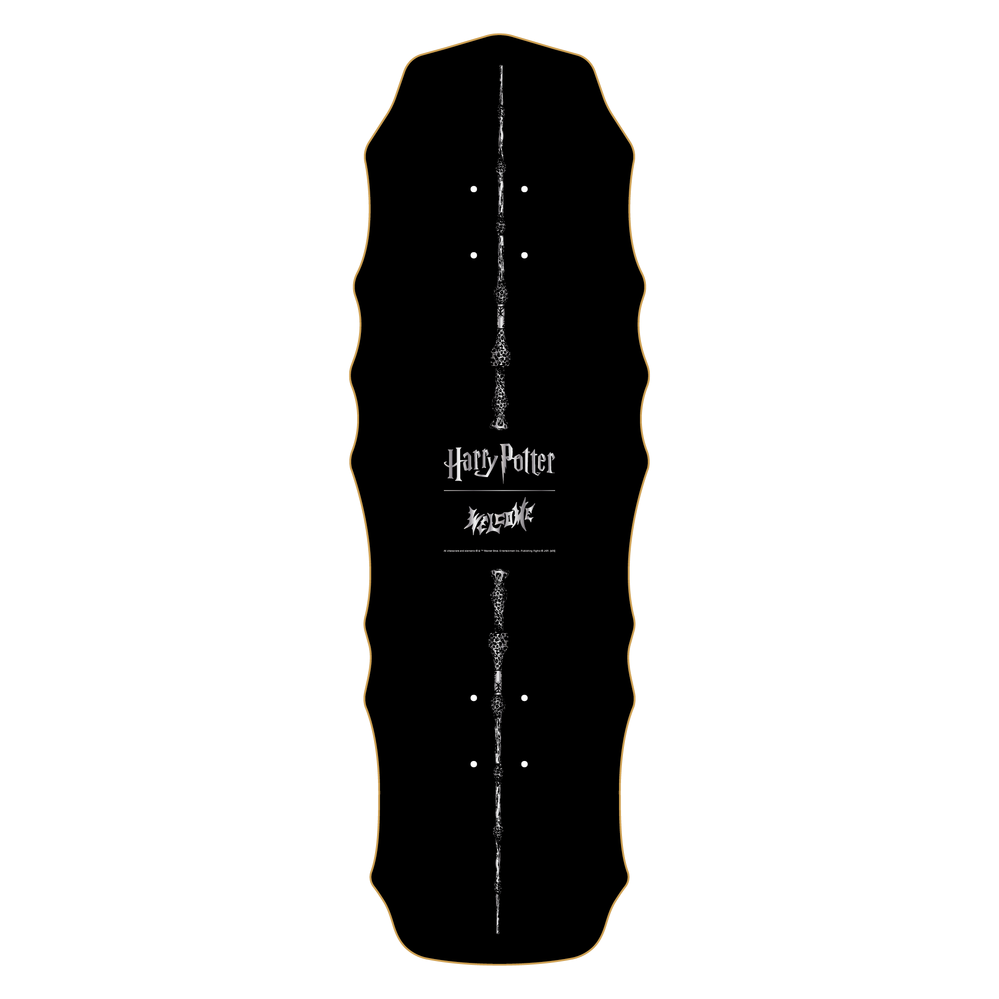 Officially-licensed collaboration Welcome x Harry Potter Thestral on Widow Deck - 10″ Black/Gold Foil. This skateboard is perfect for displaying and riding.