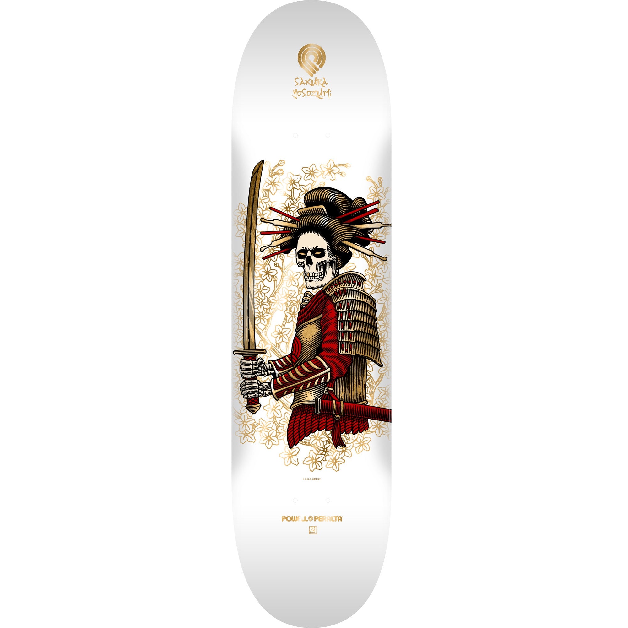 Powell Peralta Yosozumi Onna-Bugeisha Skateboard Deck - 8.25″ White/Gold Foil **PRE-ORDER**