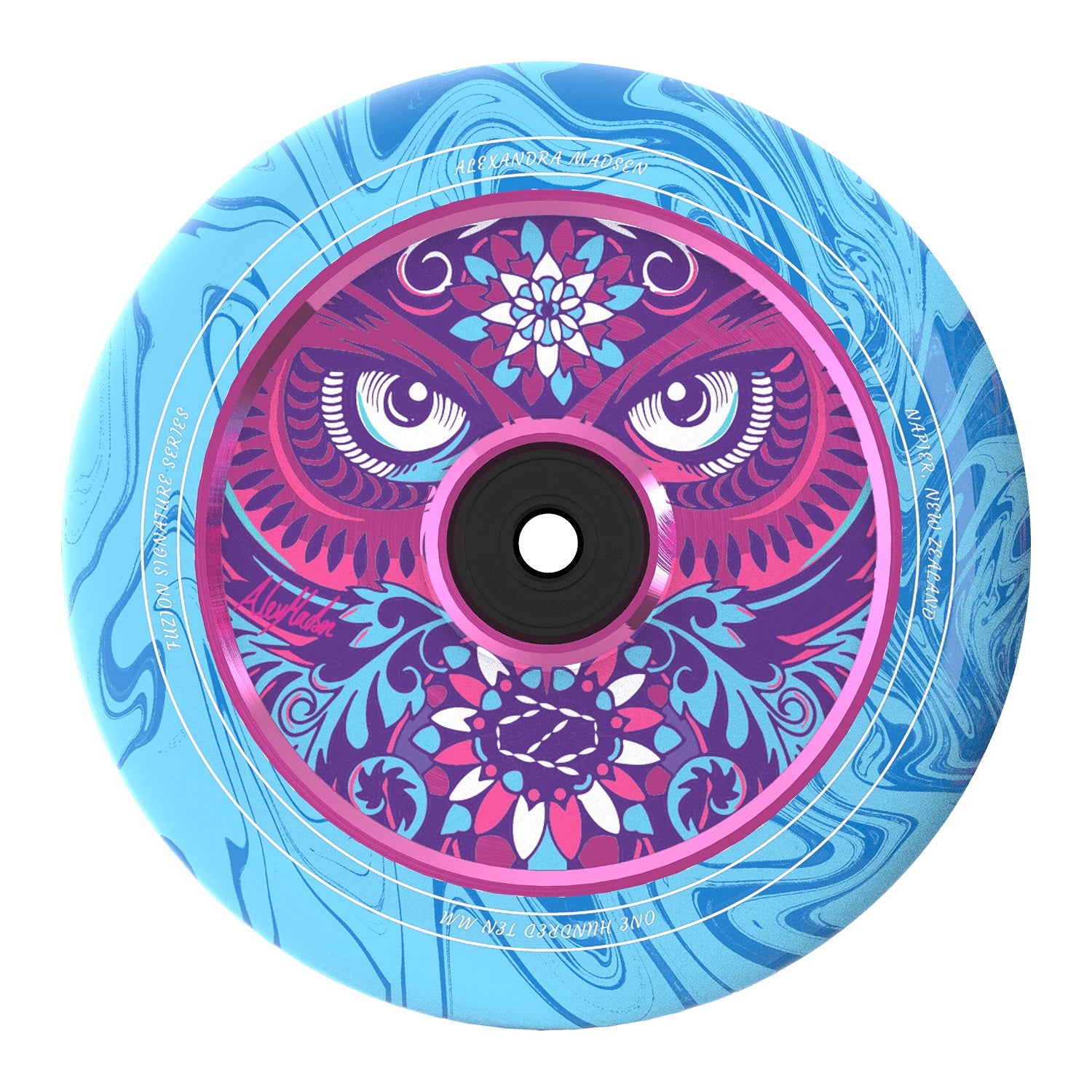 Las ruedas de la firma de Alexandra Madsen son una locura. Núcleo rosa anodizado con gráficos que hacen juego con su tatuaje favorito y una PU de remolino azul de 2 tonos. La rueda de Alexandra es una de las mejores ruedas sig jamás fabricadas. Es una declaración audaz, pero la mantenemos.