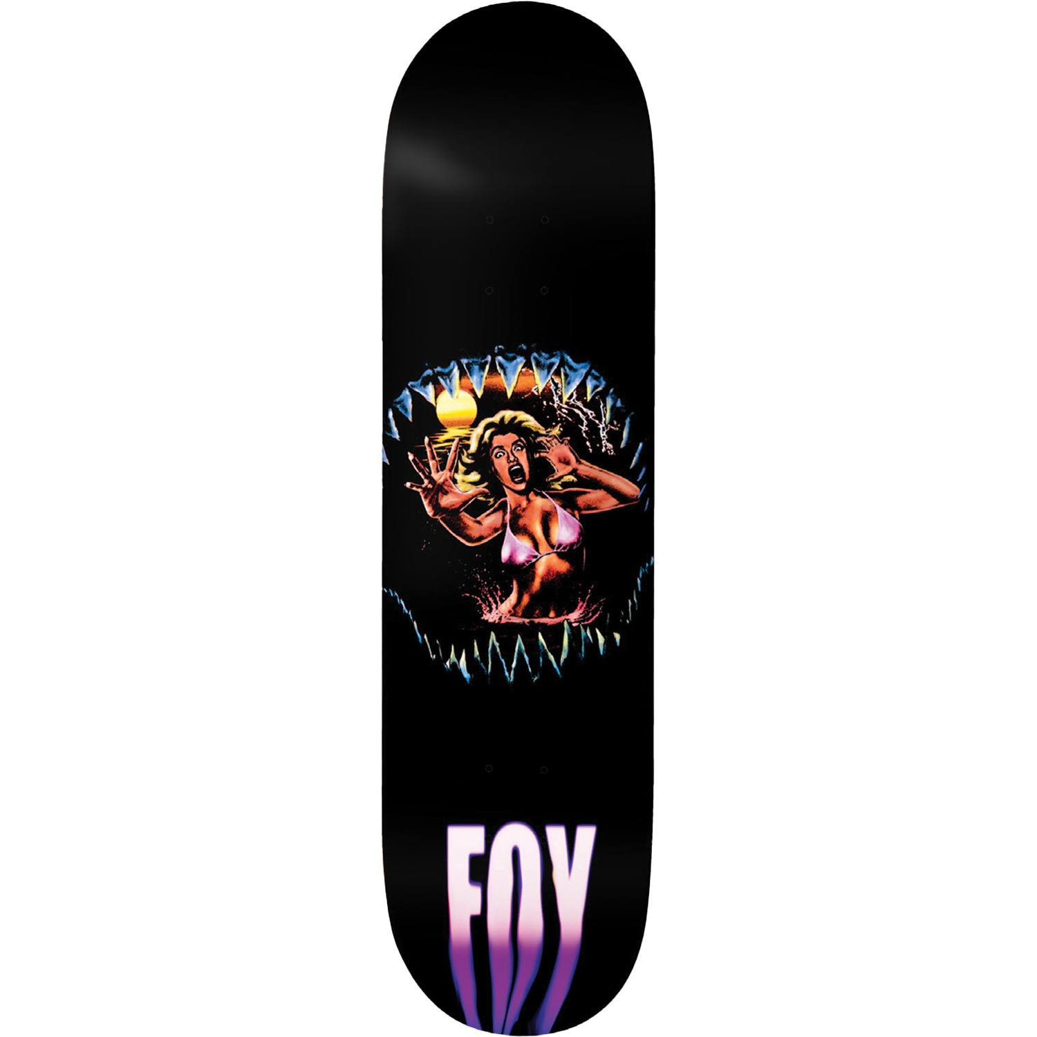 Don't be scared like the brute himself and send it with the Deathwish Jamie Foy Jaws Deck 8.38 x 32. This is a pro-quality skateboard deck constructed from traditional 7-ply maple wood with background stains that may vary.