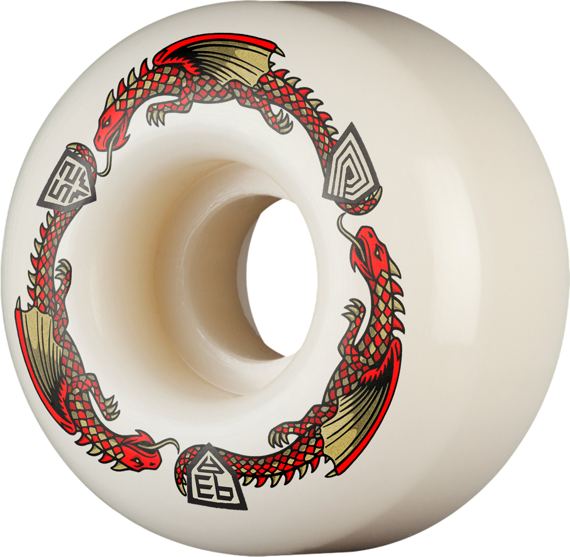 Dragon Formula is Powell Peralta's latest next generation polyurethane breakthrough. Dragons are mid hardness 88A, 93A and 97A wheels that smooth out rough terrain. Now you can roll over previously unskateable terrain on your way to a skate spot, and then skate it as well or better than before with the same wheels. This is because dragons slide like 99A & 101A wheels and still grip when needed. This makes dragons very special and unique.