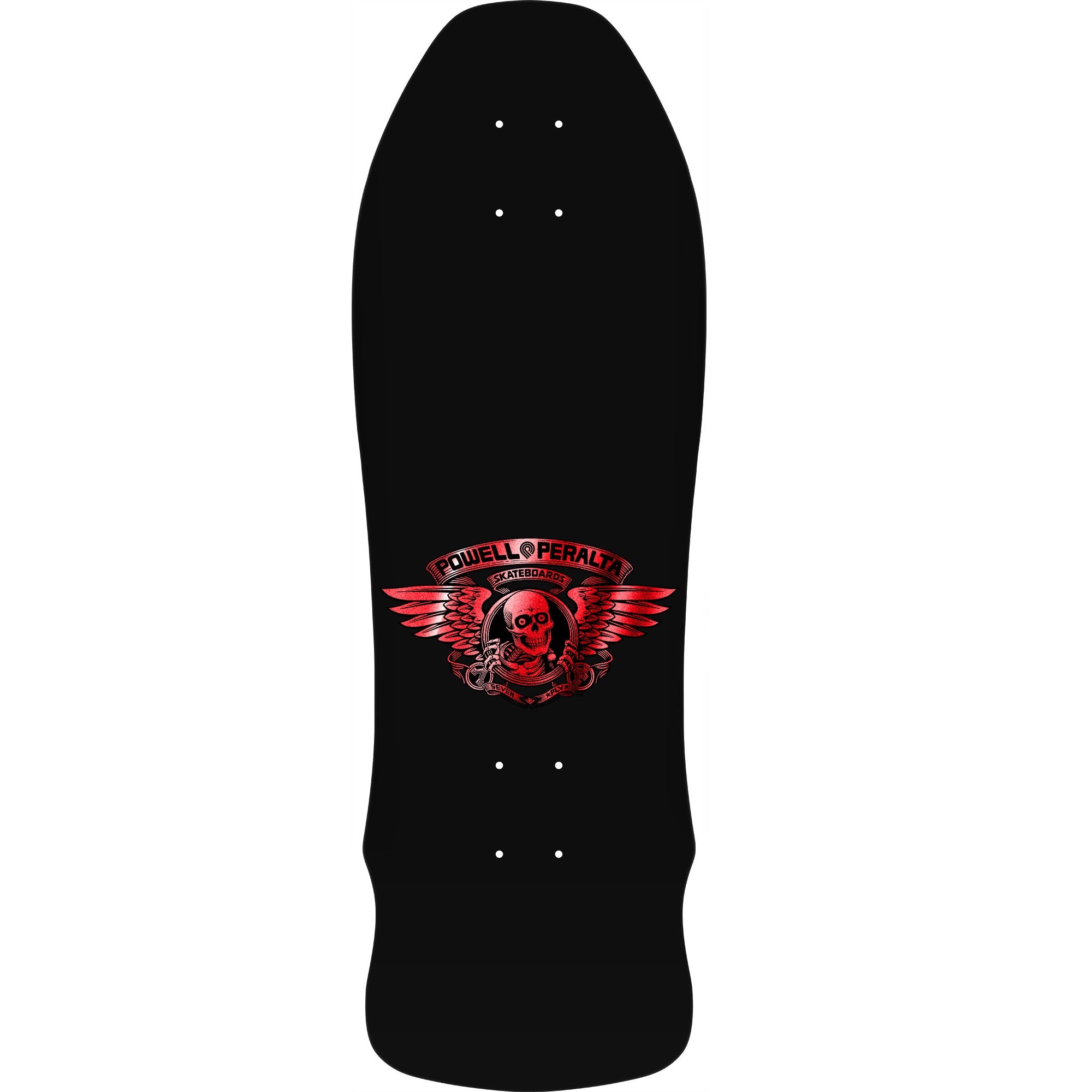 En 1986, las rampas de salto estaban de moda. Eran fáciles de construir, portátiles y divertidas para saltar desde ellas. Desafortunadamente, las plataformas se rompían por todas partes. Los retornos de las plataformas Powell-Peralta eran tan altos que la empresa buscó formas de hacer que las plataformas fueran más fuertes y más resistentes a las roturas de salto. Una solución fue la construcción Bonite. Otra fue la forma "Gee-Gaw", que tenía protuberancias para reforzar la zona de rotura. ¿Por qué "Gee-Gaw"? Pregúntele a Chris Iverson. Esta forma también se utilizó para el gráfico de Skull & Sword. Se produjeron originalmente entre 1987 y 1988.