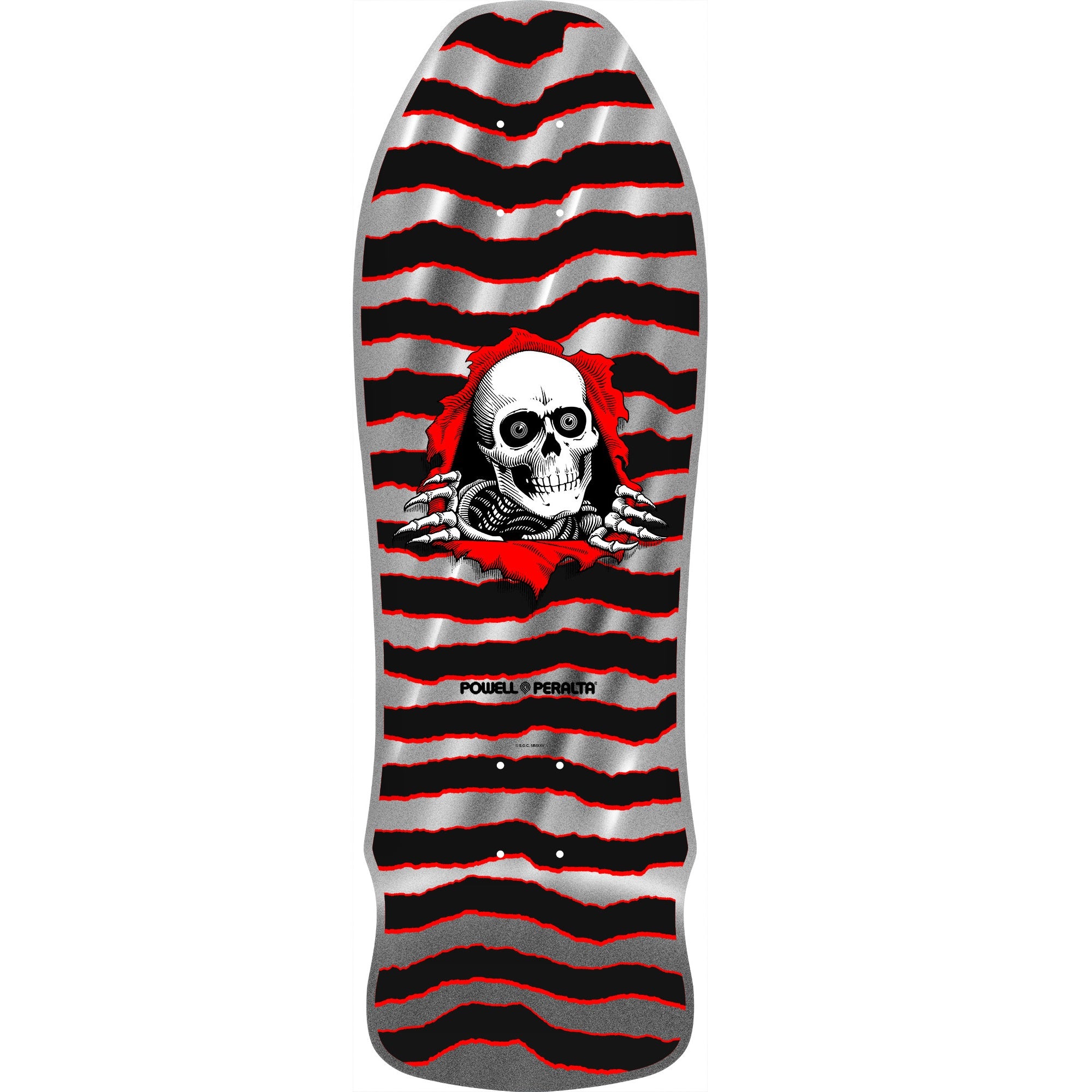 Posiblemente el gráfico de patineta más icónico de todos los tiempos, "The Ripper" fue ilustrado en 1983 por el legendario artista de Powell-Peralta, VC Johnson. Originalmente, el gráfico se usó como calcomanía para la ventana de un concesionario con la leyenda "Bones Sold Here". Luego, la obra de arte encontró su camino hacia las camisetas y, finalmente, las tablas. El gráfico de Ripper ha resistido la prueba del tiempo y ha sido un elemento básico de la línea Powell-Peralta durante más de 30 años.