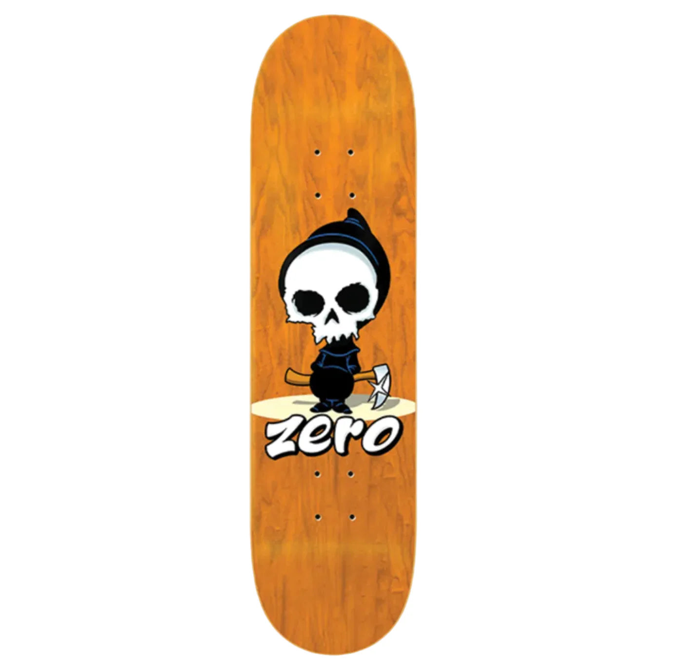 This Zero Lil Reaper skateboard deck features a width of 8.0 inches. With its durable construction and sleek design, it offers stability and performance for skateboarders of all skill levels. Perfect for taking on the streets or performing tricks at the skate park. Background stains that may vary.