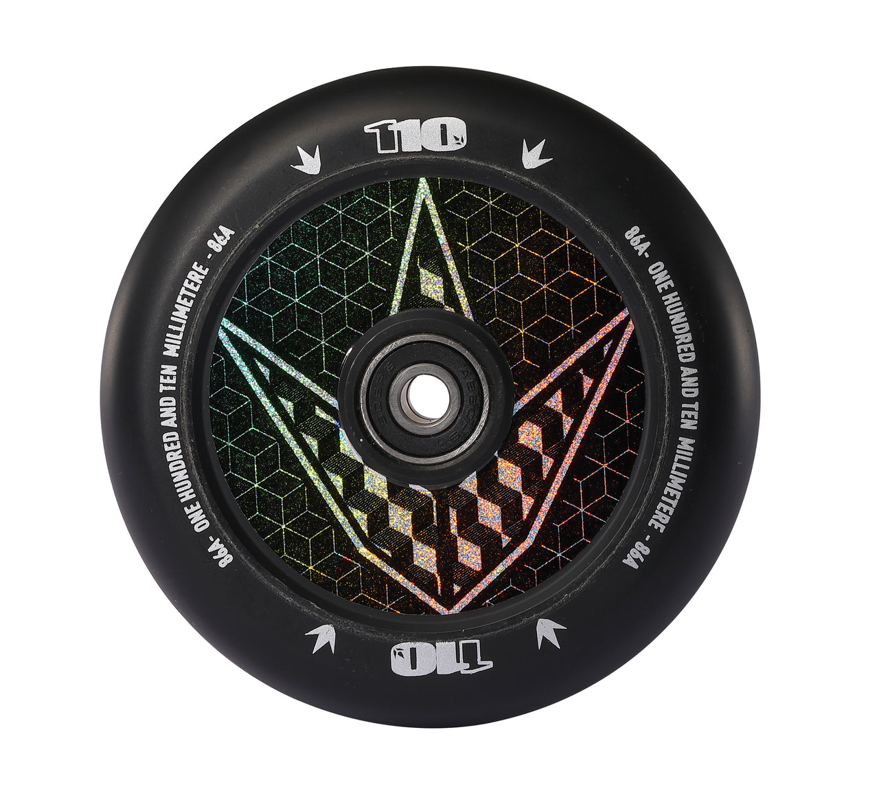 ¡Estas nuevas ruedas Envy Hollow Core son una pasada! Tienen 110 mm y 26 mm de ancho, por lo que son un poco más anchas que una rueda normal. Por lo tanto, hacer que la rueda encaje en la horquilla o la base puede resultar un poco más difícil la primera vez que lo hagas.