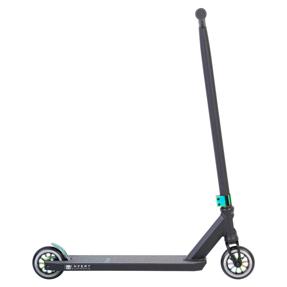 El Invert Supreme 3-10-14 es un arma seria de un scooter de parque. Viene con una plataforma un poco más larga y una altura de barra más alta para niños principalmente de 10 a 14 años. Cuenta con nuestro nuevo diseño de barra en "Y", dirección totalmente integrada y sellada, cubierta de aluminio ligero V3 invert con tapa, horquilla de acero inoxidable forjado, ruedas de aleación de 110 mm con 10 radios y poliuretano de alto rebote, nuevos puños Invert de transición de 165 mm y mucho más. ¡Este scooter no te defraudará!