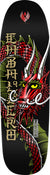 In 1988 Powell-Peralta ran an "Artist Wanted" advertisement in TWS and Thrasher. The contest "winner" would get a job in the Powell-Peralta art department in Santa Barbara. The artist selected was Sean Cliver, mainly because his illustration style closely resembled VCJ's. Cliver's first deck design, the Barbee Ragdoll, was a departure from the traditional VCJ look, but when it came time to update the Caballero dragon, Sean emulated the master. At some point later, someone dubbed the graphic Cab "Ban This" Dragon since it was prominently featured in that video (think slow-motion sequence).