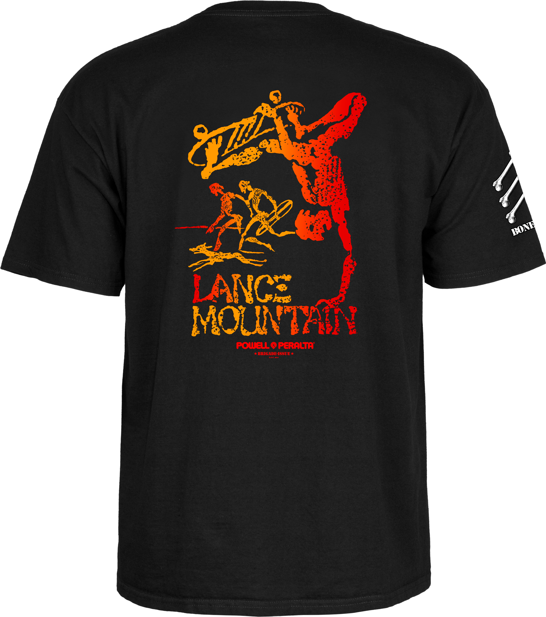Powel Peralta Bones Brigade "Lance Mountain" Short Sleeve T-Shirt Series 17. Classic Bones Brigade Lance Mountain graphic. Small front logo, Large logo on back.