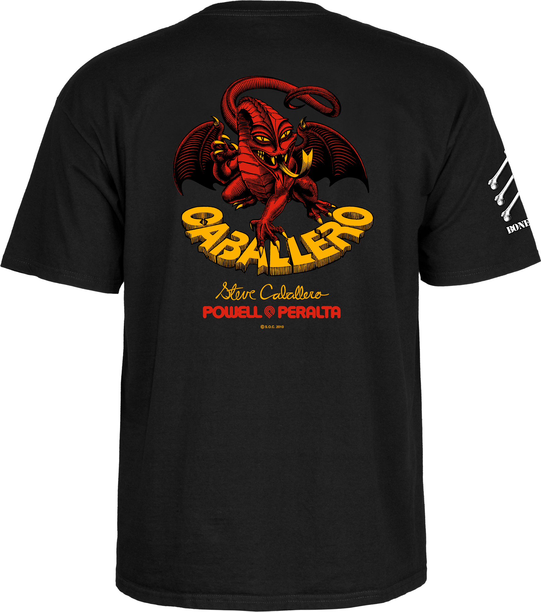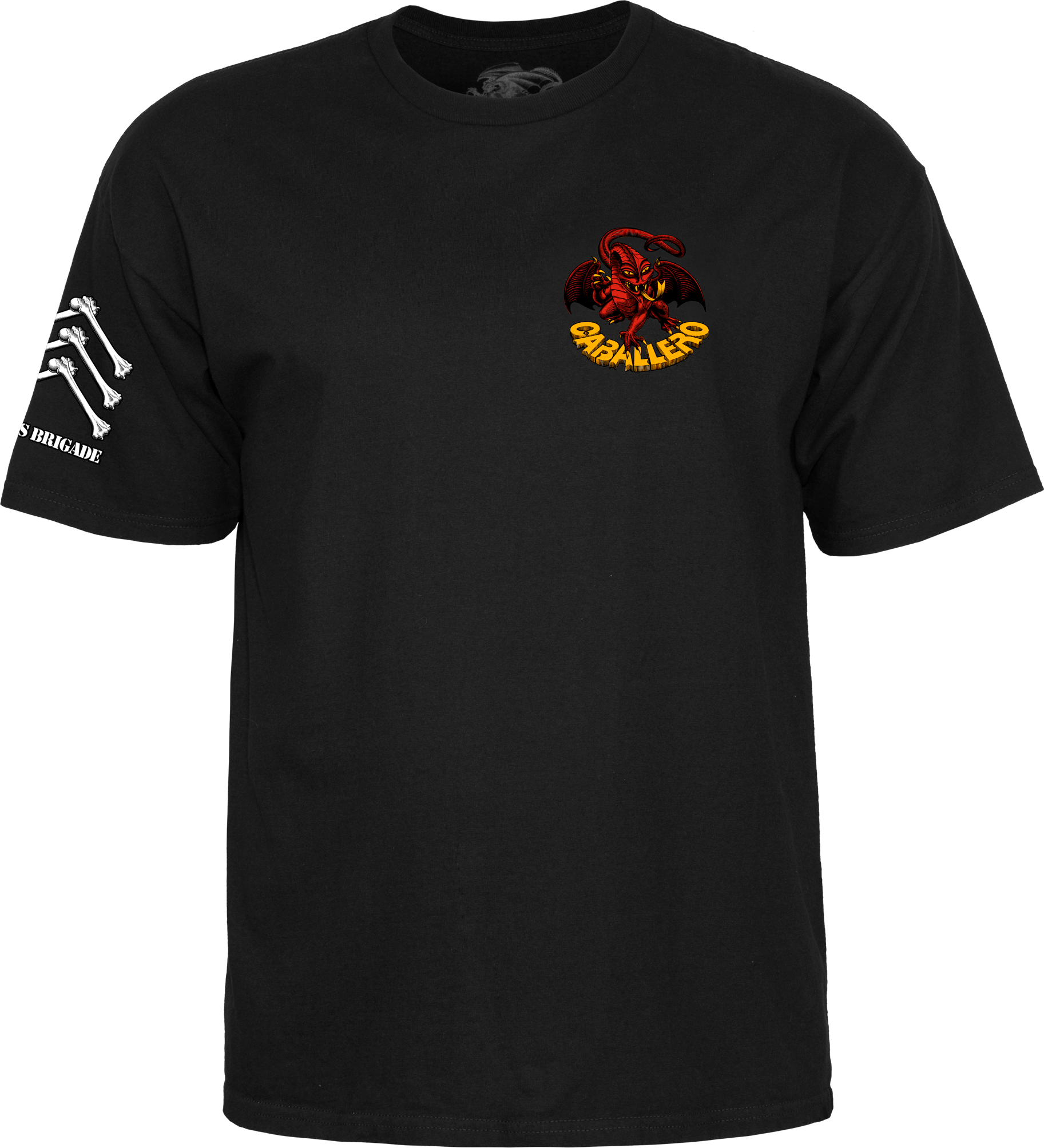 Powel Peralta Bones Brigade "Steve Caballero" Short Sleeve T-Shirt Series 17. Classic Bones Brigade Steve Caballero graphic. Small front logo, Large logo on back.
