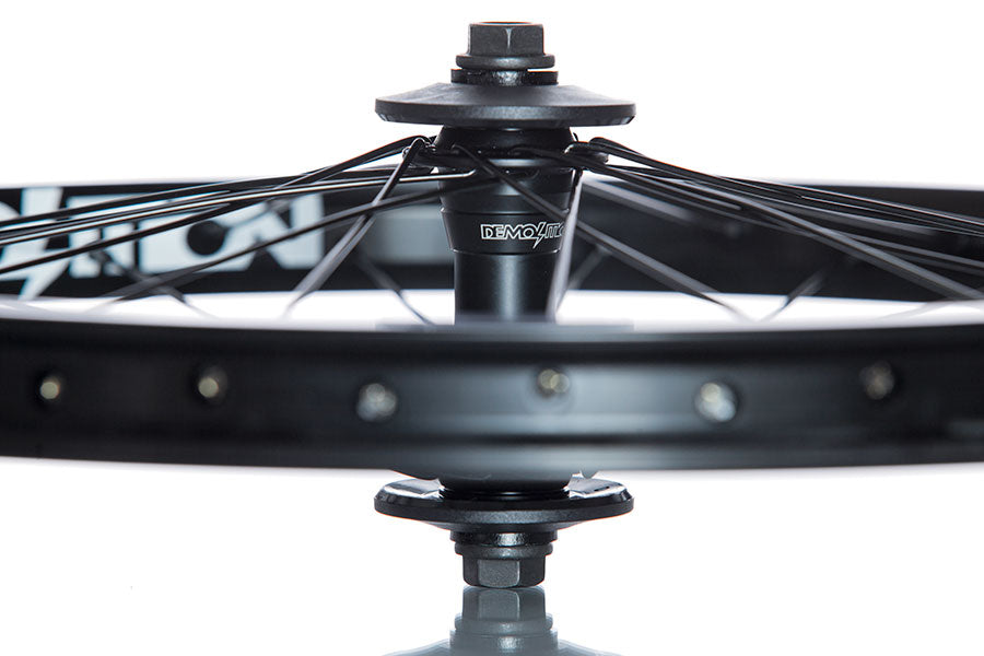 The New Whistler Pro Front Hub laced our Zero double walled and welded (seam) hoop.  Longer Heat treated CRMO bolts into the 4140 Heat treated axle rolling on Japanese sealed bearings. Also included are two hub guards.