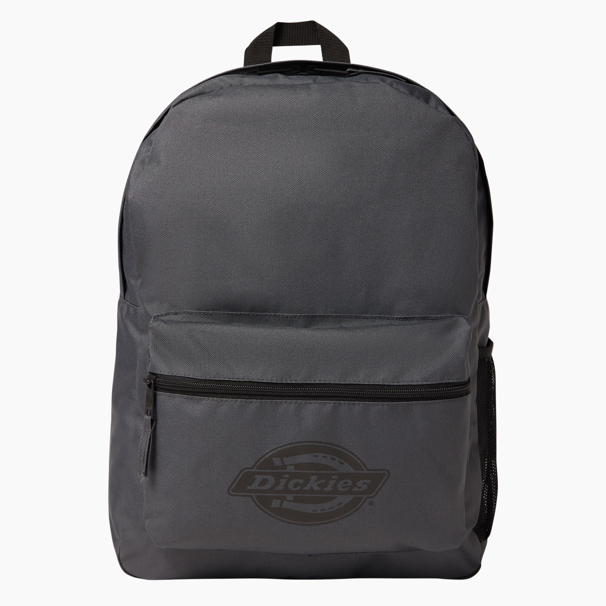 Our logo backpack features a large main compartment with internal laptop sleeve and a smaller zip pocket to keep your phone, keys, and wallet secure. The bag has a padded back panel for comfort, a side water bottle pocket, and a bold logo on the front as well as our signature wordmark across the top.