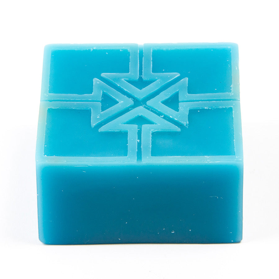 Good sized block of light blue ledge wax that goes undetected a little longer than other colored waxes when applied to private property.