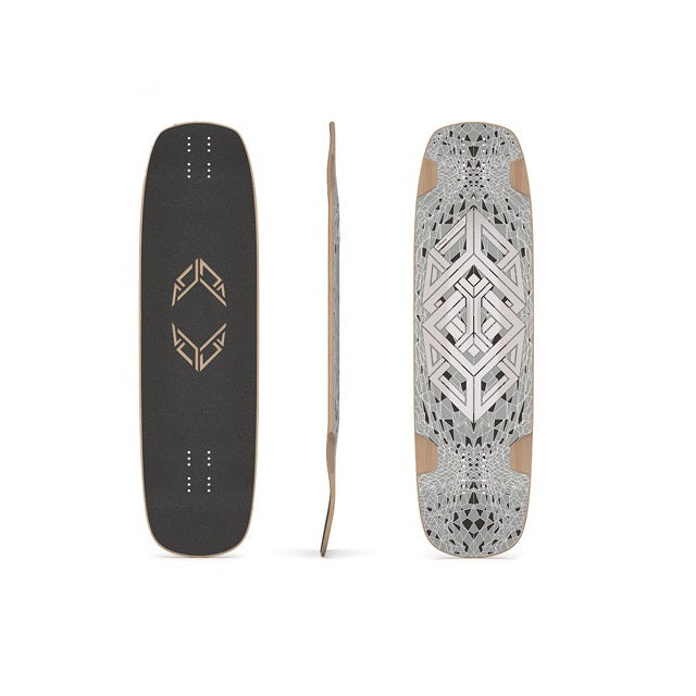 At rest, the Tesseract II’s structured and angular graphics radiate a dark, veiled geometry. Expose it to sunlight, and the photochromic inks animate silently—faint lines and facets emerge, hinting at layers beyond human sight.