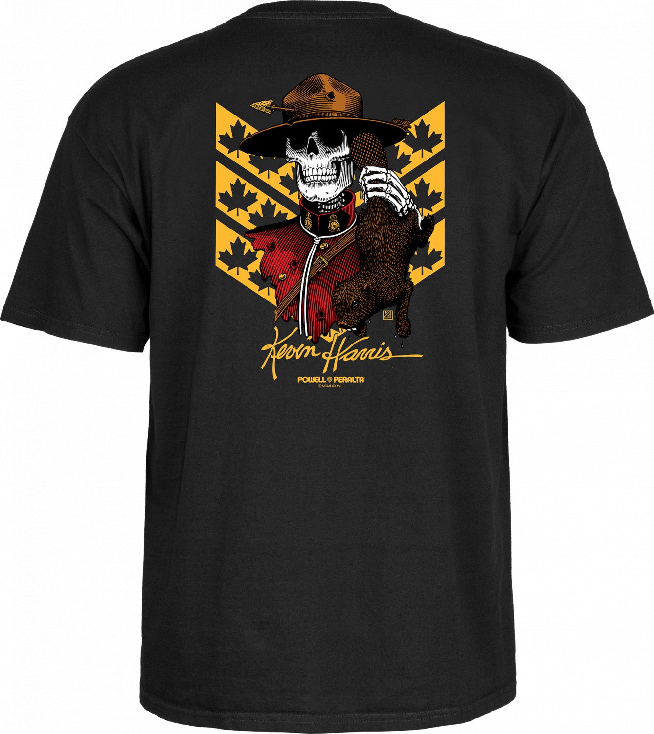 In 1977, artist VCJ illustrated two black-and-white posters to promote Bones wheels. About a year later, Court sat down to work on a new project that would turn that Bones theme into the concept of a skateboarding skeleton. To help Court make the image as realistic as possible, George bought a life-sized skeleton from a medical supply shop. Court named her Rosie. After several hours of propping and rigging, Rosie hung frozen in the position of a skateboarding skeleton. Court got to work. His piece, completed near the end of 1978, served as a Bones sticker and T-shirt graphic, the first illustration created under the new Powell Peralta brand.