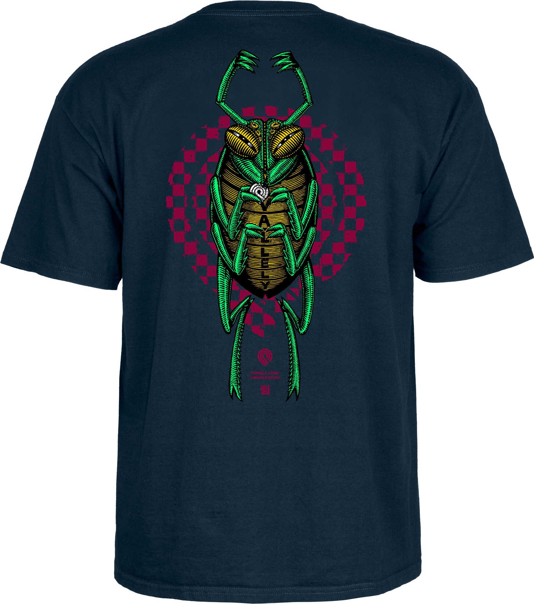 Introducing the Powell Peralta Mike Vallely Bug T-Shirt in Navy. Made for comfort and style, this t-shirt features the iconic graphic of Mike Vallely with a twist - a bug! Perfect for fans and skaters alike. Made from high-quality materials for long-lasting wear.