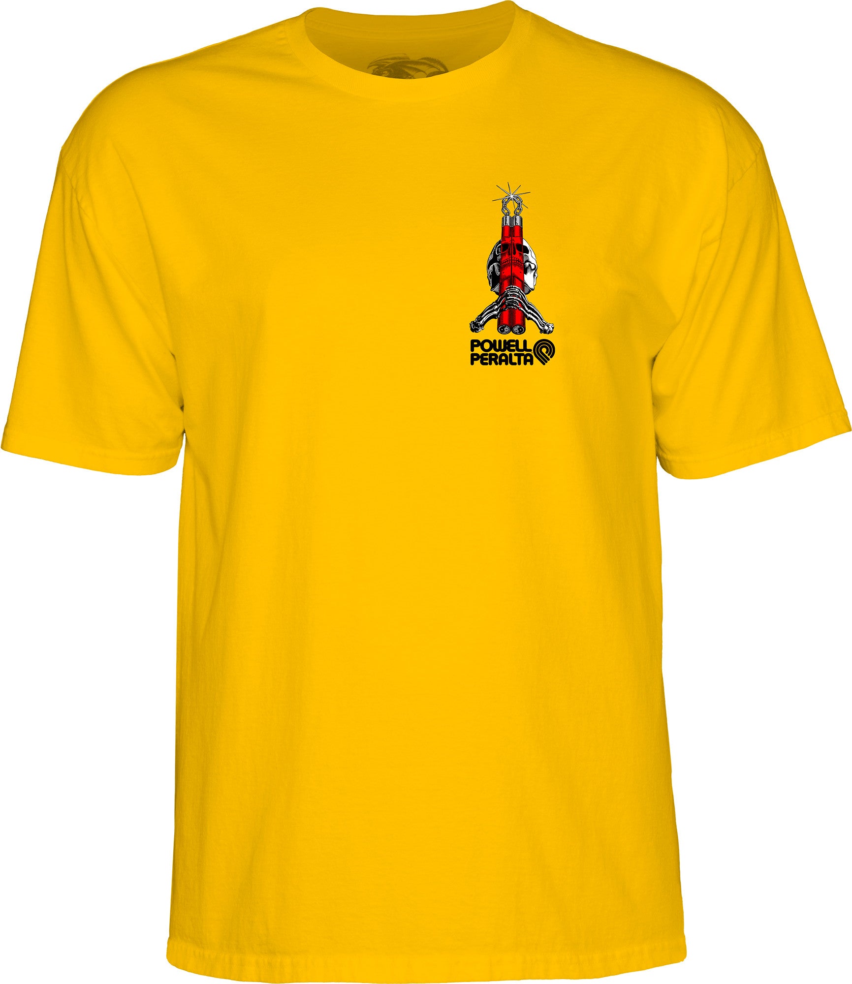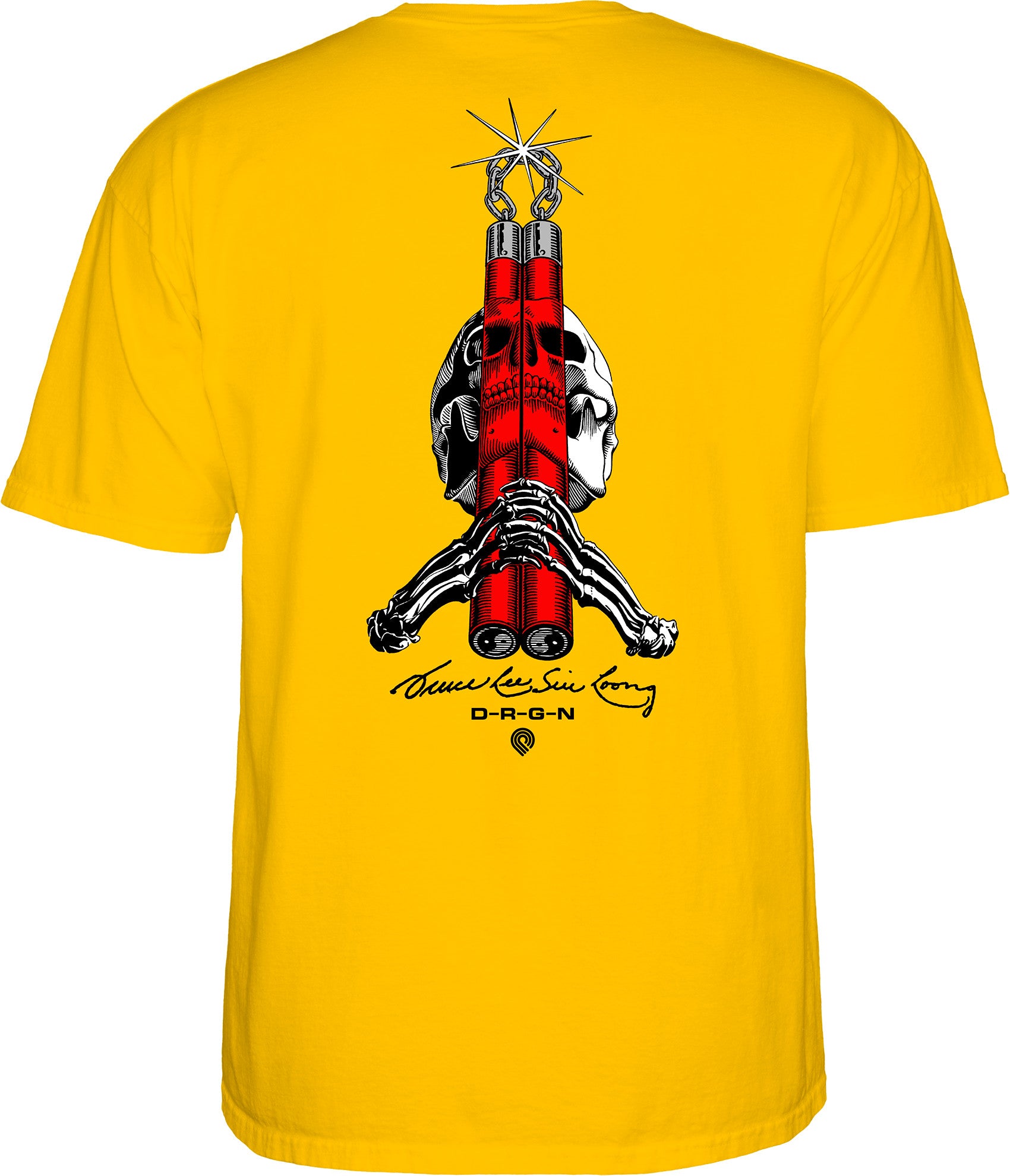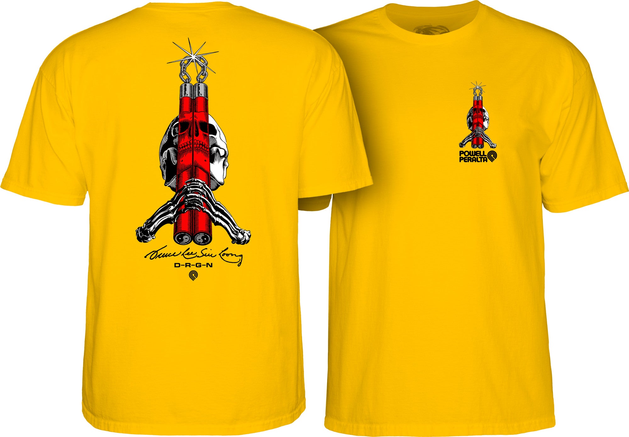 Let your love for skateboarding and martial arts unite with the Powell Peralta Skull & Nunchucks Bruce Lee Collaboration T-shirt. This limited edition shirt features a bold graphic of Bruce Lee wielding nunchucks, designed in collaboration with Powell Peralta. Made from high-quality materials, this shirt is perfect for both skating and casual wear.