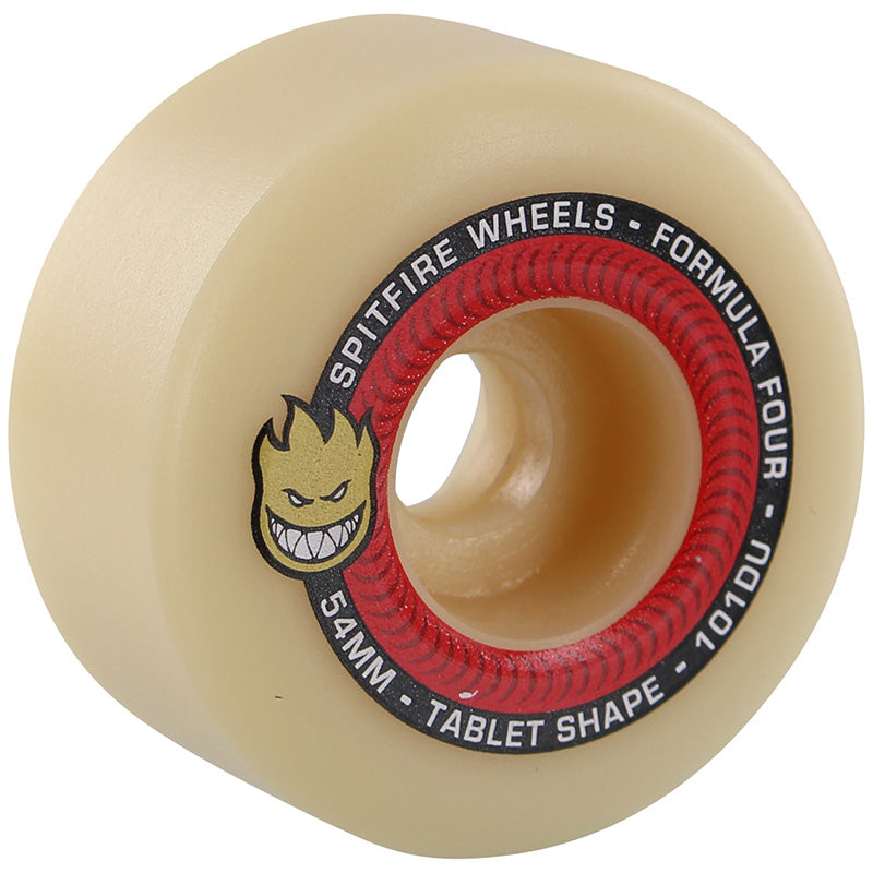 Spitfire is proud to introduce their newest shape to those who keep the underground lit with the Spitfire Formula 4 Tablet 101a Wheels. Formula Four Performance Urethane lasts longer, withstands more abuse and performs superior to all other wheels. Designed to combine all the desired properties of a performance wheel without sacrificing any one attribute at the expense of another.